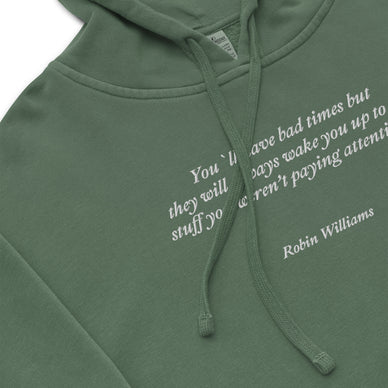 Robin Williams carried a light that reached into every shadow a reminder that joy and sorrow are not opposites, but reflections of the same depth. His words, “You will have bad times, but they will always wake you up to the stuff you weren’t paying attention to,” speak to the beauty of awareness born from struggle.